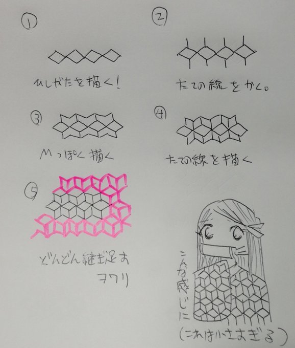 をんたま No Twitter 個人的禰豆子の服の柄 麻の葉柄 の描き方 Part2 鬼滅の刃に出てくる禰豆子 ねずこ の服をかくときに使います 字見にくかったらすみません 三角定規と普通の定規あったら出来ます