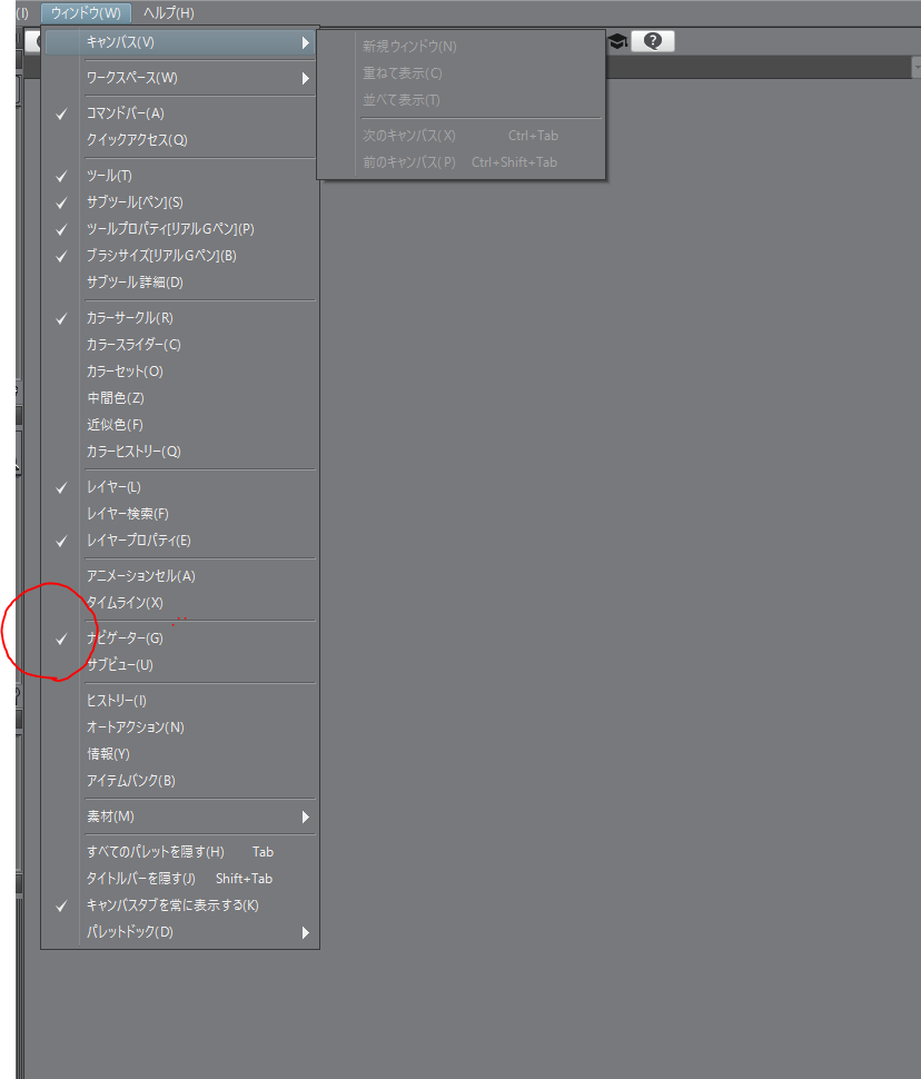 ナビゲーターパレット消えた どうすれば戻る Clip Studio Ask