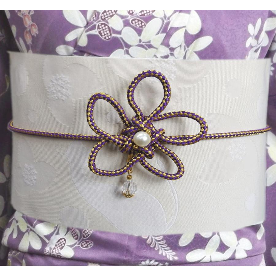 飾り紐 帯かざり 帯締め 花結びパール 長尺 紫色金 浴衣 振袖 着物 Hmkhm 3 最新和服 和雑貨 和さくら庵 通販 Yahoo ショッピング