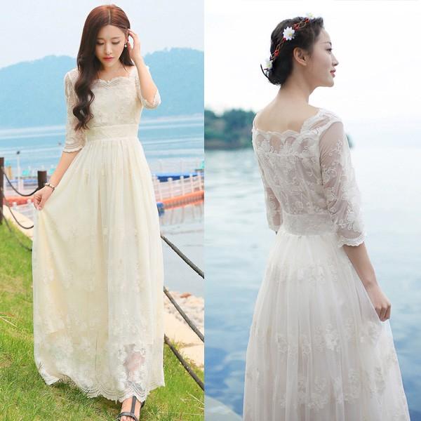 送料無料 ワンピース ロングドレス レースワンピース 白ワンピース ホワイト 結婚式 二次会 花嫁 演奏会 一週間だけ割引値段の通販はau Pay マーケット m k